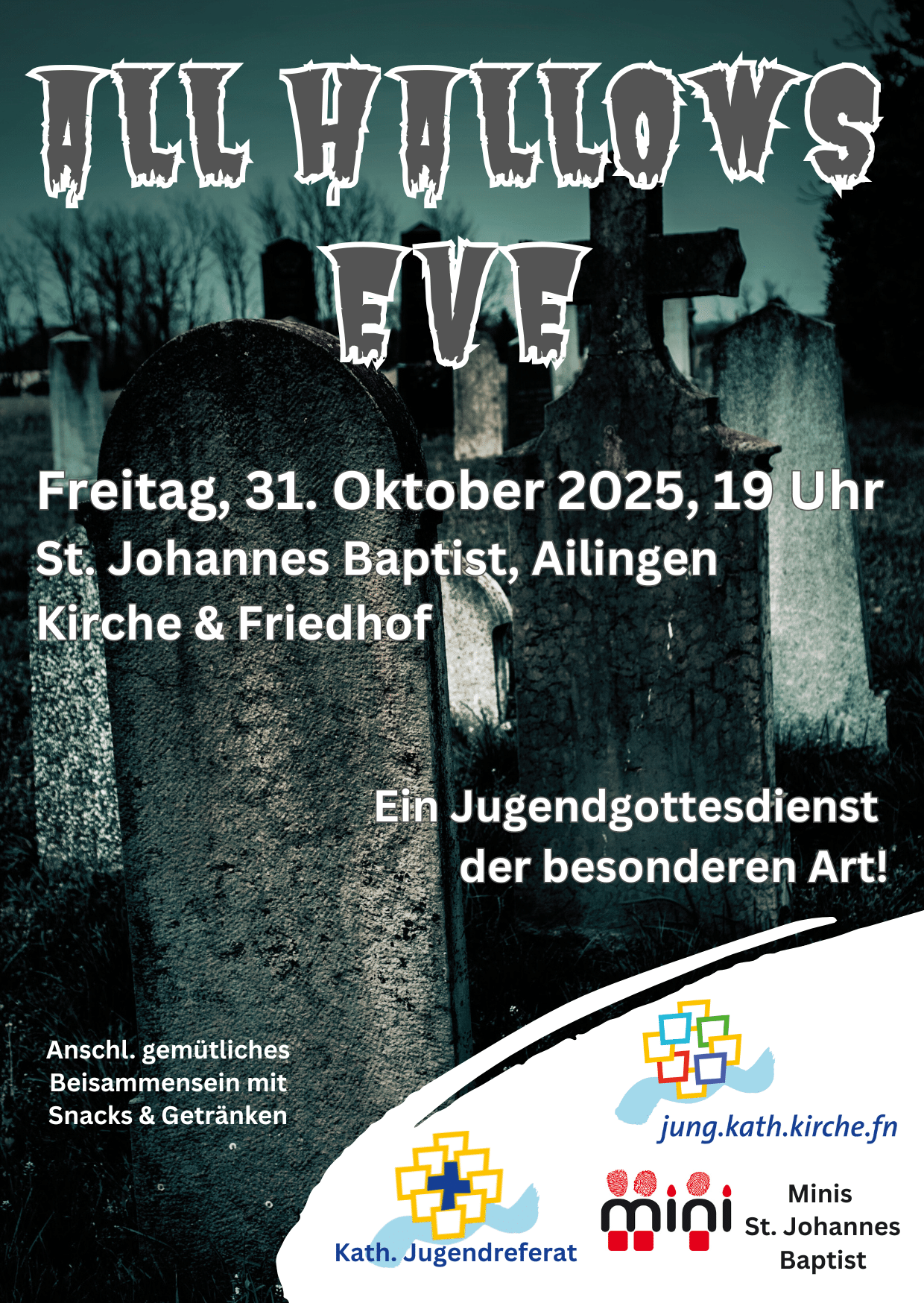 Jugendgottesdienst an Halloween Noch keine Ahnung was du vor der Halloween-Party machen sollst? Schau bei unserem Jugendgottesdienst vorbei, dann kann die Party im Anschluss starten ;-)!