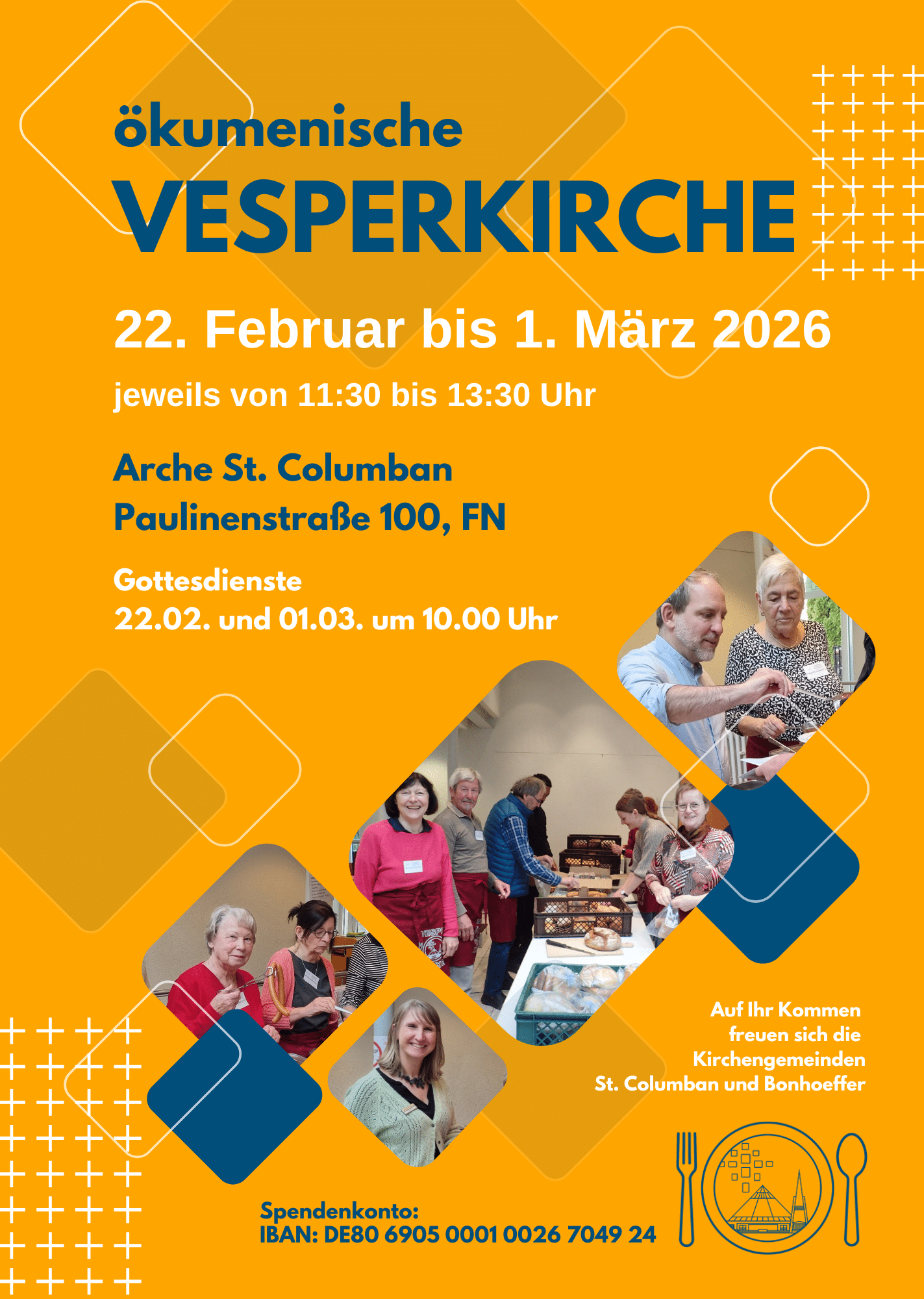 Die Fastenzeit lädt uns ein, das Einzuüben, bewusster zu leben und diese Woche der Vesperkirche kann für uns ein Spezialtrainingsprogramm werden, wo wir die Umkehr, das Umdenken, das Jesus zu Beginn der Fastenzeit fordert, wo wir sensibel das Reich Gottes in unserem jetzt, hier und heute nahe ist. Im Trubel mag es manchmal wenig besinnlich sein, dafür lohnt sich vielleicht aber der Gang hinüber in die Kirche. Vielleicht schaffen wir es, diese Woche uns anders zu ernähren, nicht nur mit leckerem Essen, vielmehr mit dem, was neben der Nahrungsaufnahme passiert. Wer sitzt neben mir, steht vor/hinter in der Schlange, wer bedient mich da. Und wie gehe damit um, wenn ich mal nicht als erstes dran komm, oder nichts mehr vom Stückchen Kuchen bekomme, das mich angelacht hat. Wie erfahren wir Menschen anderer Konfession oder Religion? Ich lad sie, Euch ein, ganz bewusst in dieser Woche da zu sein, bewusst zu essen, bewusst die anderen wahrzunehmen, vielleicht mal mehr zuzuhören als selber zu reden – oder mal interessiert nachzufragen. Was nährt Dich täglich? Was beschäftigt Dich im Alltag? Vielleicht entdecken wir dabei neue Perspektiven.